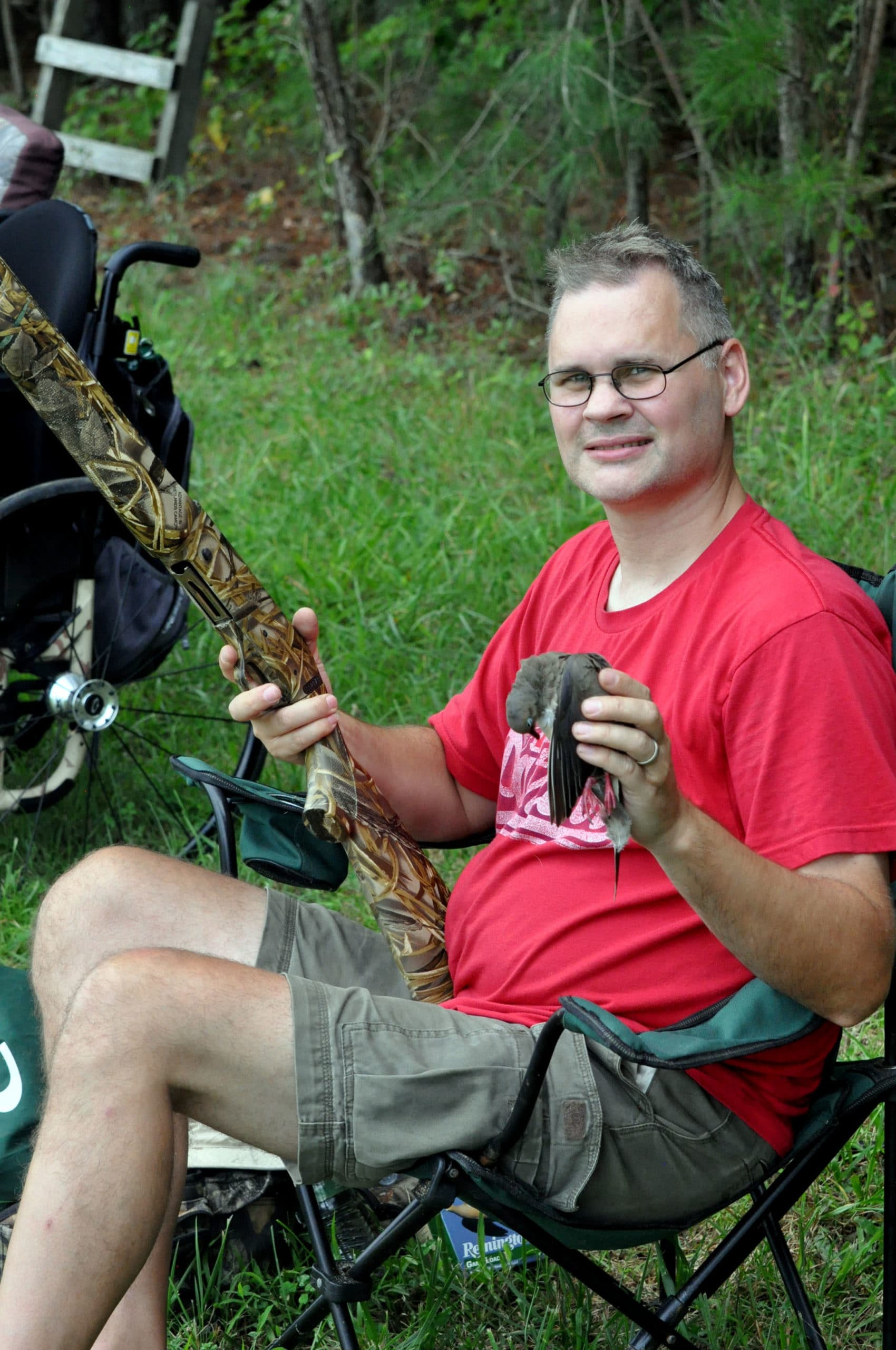 One of those friends is Marine Chief Warrant Officer Gary Stouffer came dove hunting with his son. With several tours under his belt, Gary has survived multiple IED blasts and a devastating CH-53 helicopter crash.