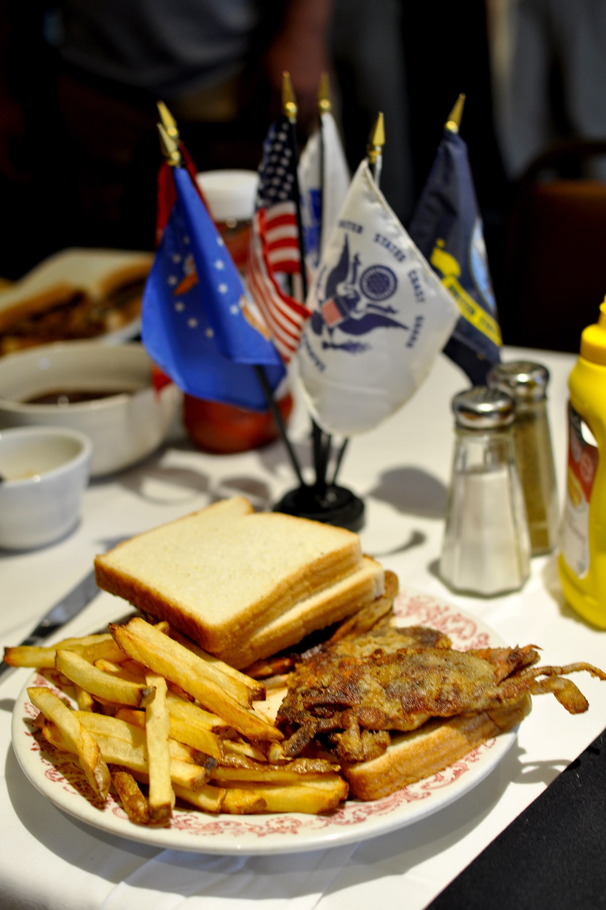 The American Legion post in Cambridge welcomed us to their neighborhood with a special lunch, characteristic of the Chesapeake: delicious locally caught soft-shell crab sandwiches. From there, we drove to meet Mr. Hopkins, along with some community volunteers and their faithful bird dogs.