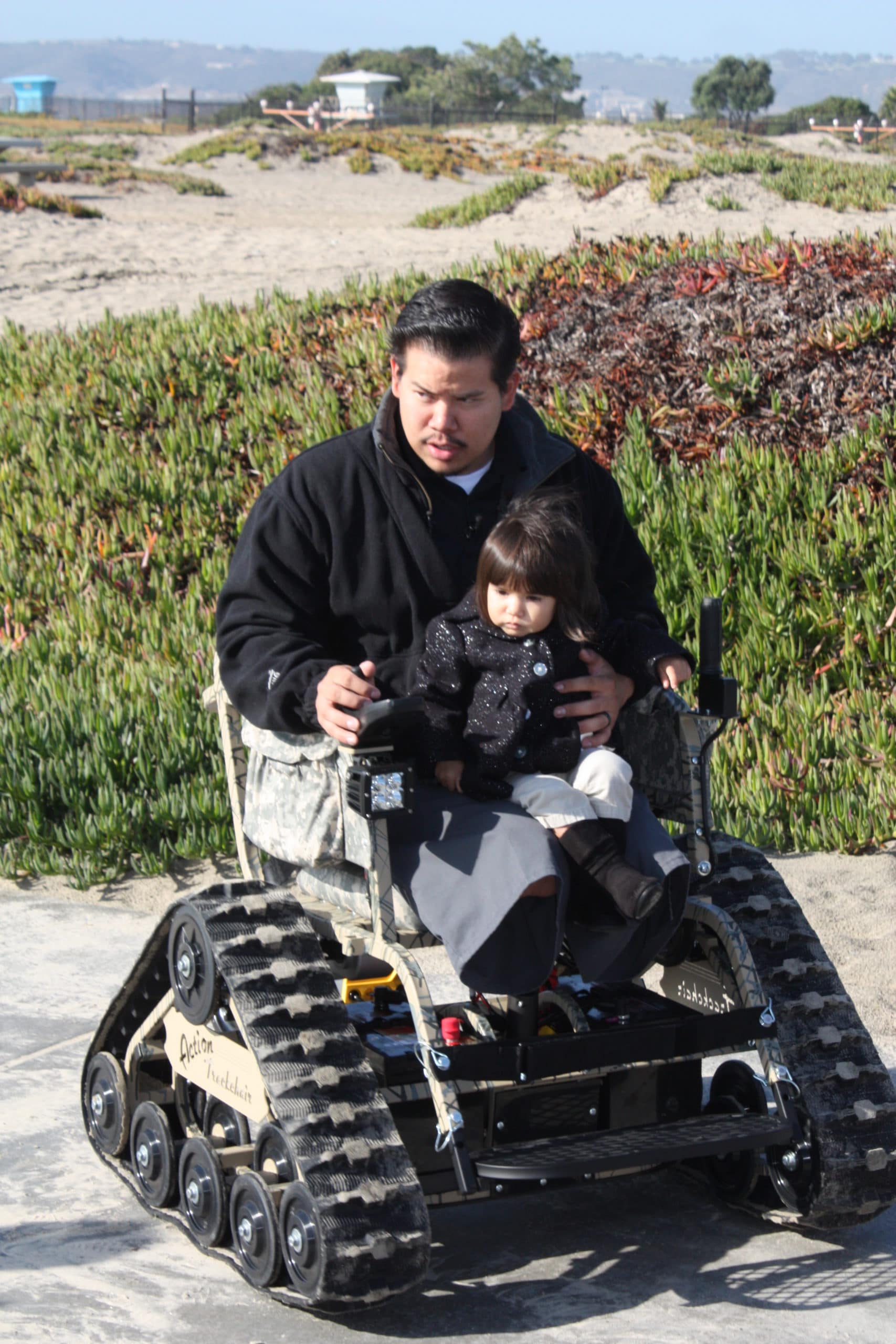 Despite his many achievements, including courses to become an ultrasound technician, there are still places this Marine wants to go. Campgrounds, hiking trails, and the beach, being a few. These settings are difficult to maneuver with prosthetic limbs or a wheelchair, and Carlos had yet to take his one-year-old daughter to his favorite outdoor locations.