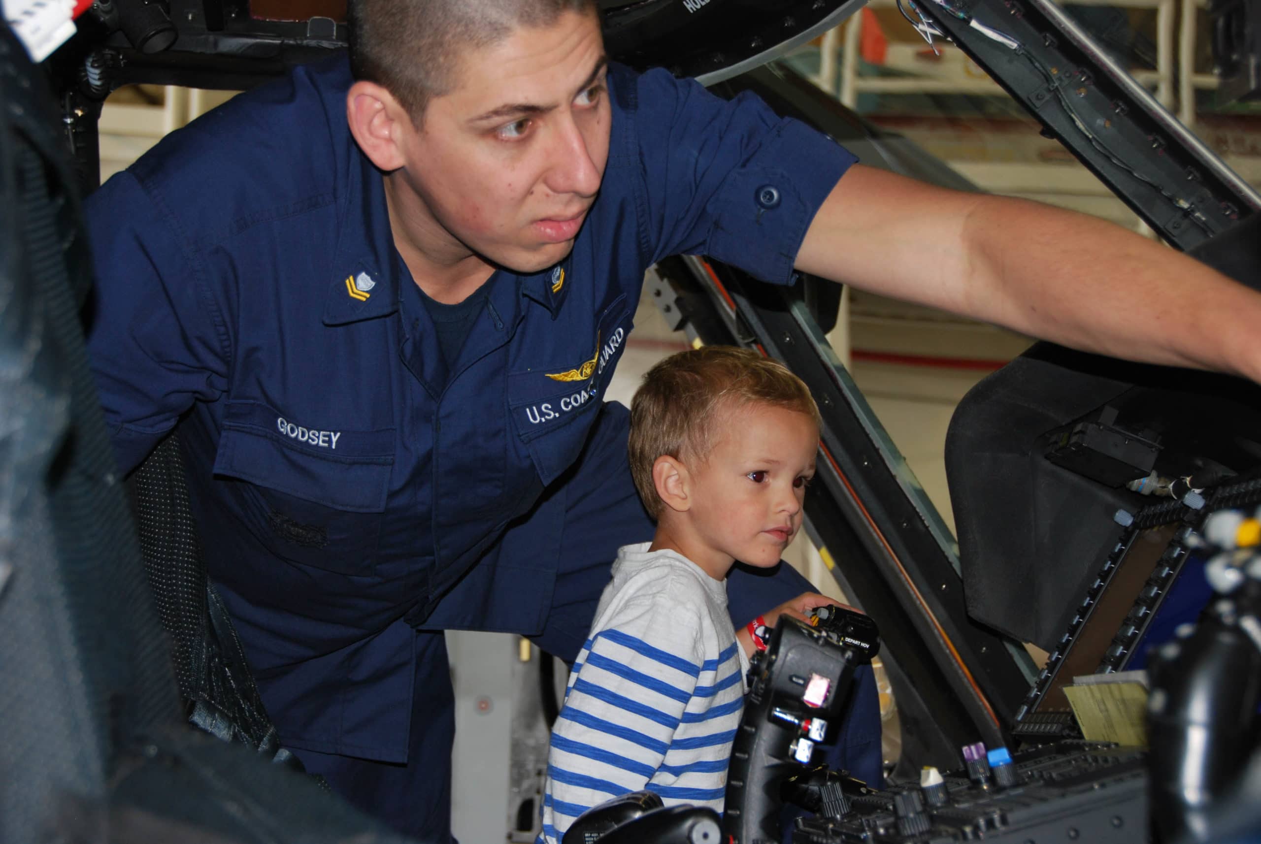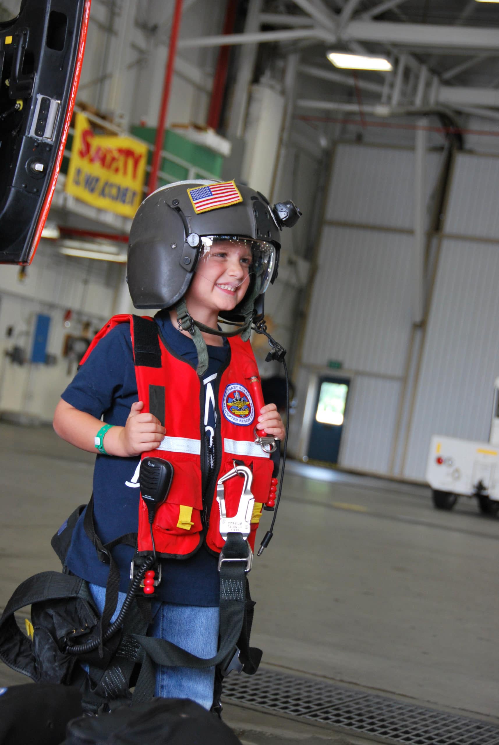 We ate lunch with the Coast Guardsmen and toured the helicopter. The kids tested the controls, tried out the rescue swimmer costume, and played in the rescue basket.