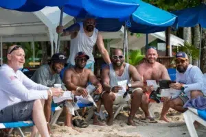 The final day, the group was treated to board Costa Cat Cruises, donated by Jim Kitchell, where they spent the day at Isla Tortuga – a beautiful white sand island.  The group participated in the snorkeling and hike, but many chose to relax, ponder, and enjoy each other’s company.  Just before departing the island, Dimyas led the group to open up their burden bag – a five-pound sack filled with sand and wrapped in duck tape, and they carried it with them every day to every place.  Inside was their bag was a note they had filled out on the first day where they were asked to write-down their burdens.  Dimyas asked the group to open the sacks and choose whether they would continue to carry them or leave them on the island.  Not one veteran held on to their burden sack and we pray that this exercise was more than symbolic.