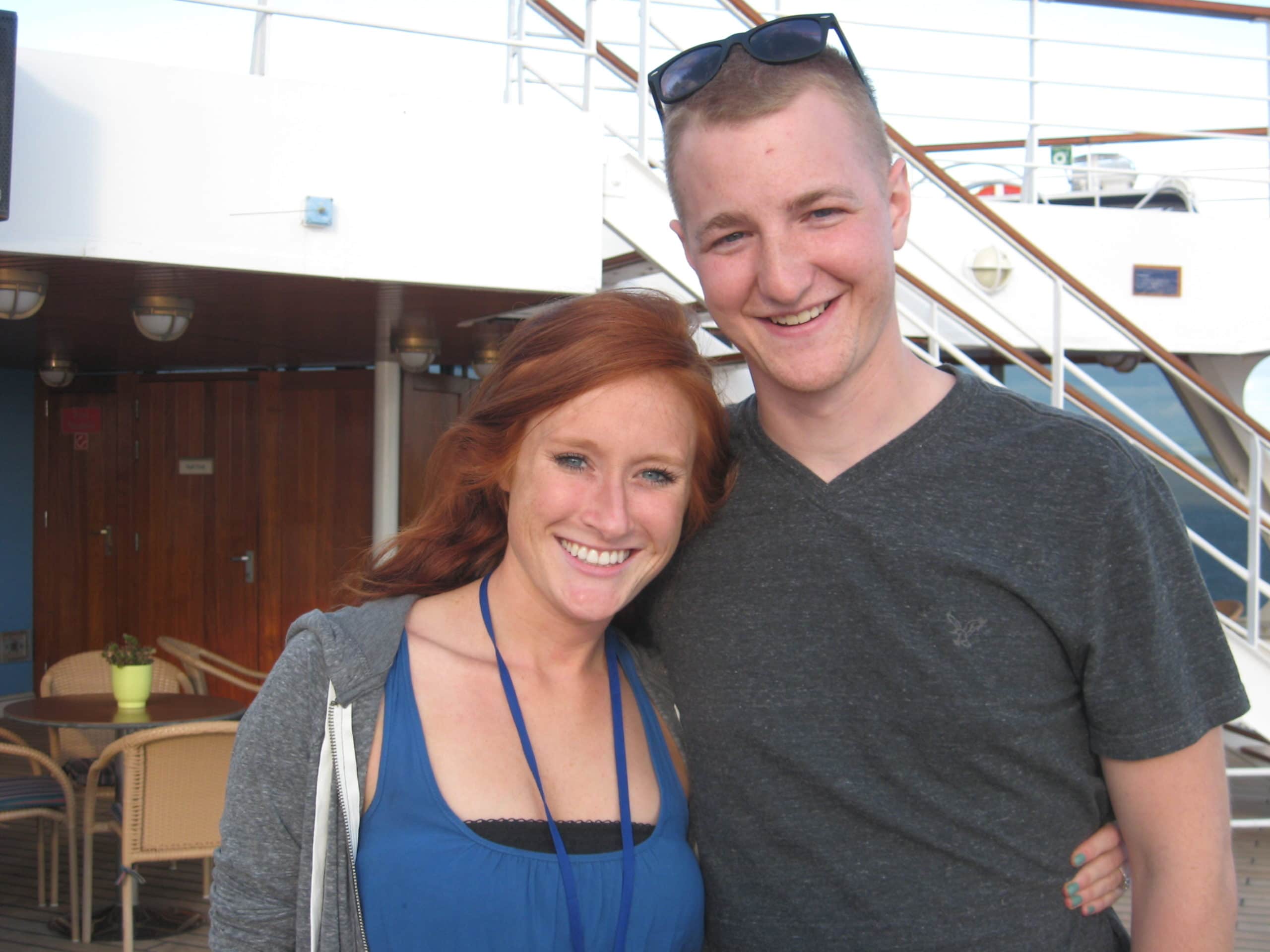 Army Captain Pat Horan was shot in the head while on patrol in Baghdad in 2007. He was reported to be dead, but ten surgeries and years of therapy later, Pat’s relearned how to walk, talk, read, and write. The first day of the cruise marked the fifth anniversary of his miraculous survival! He came aboard with his wife, Patty, and service dog, Wilson.