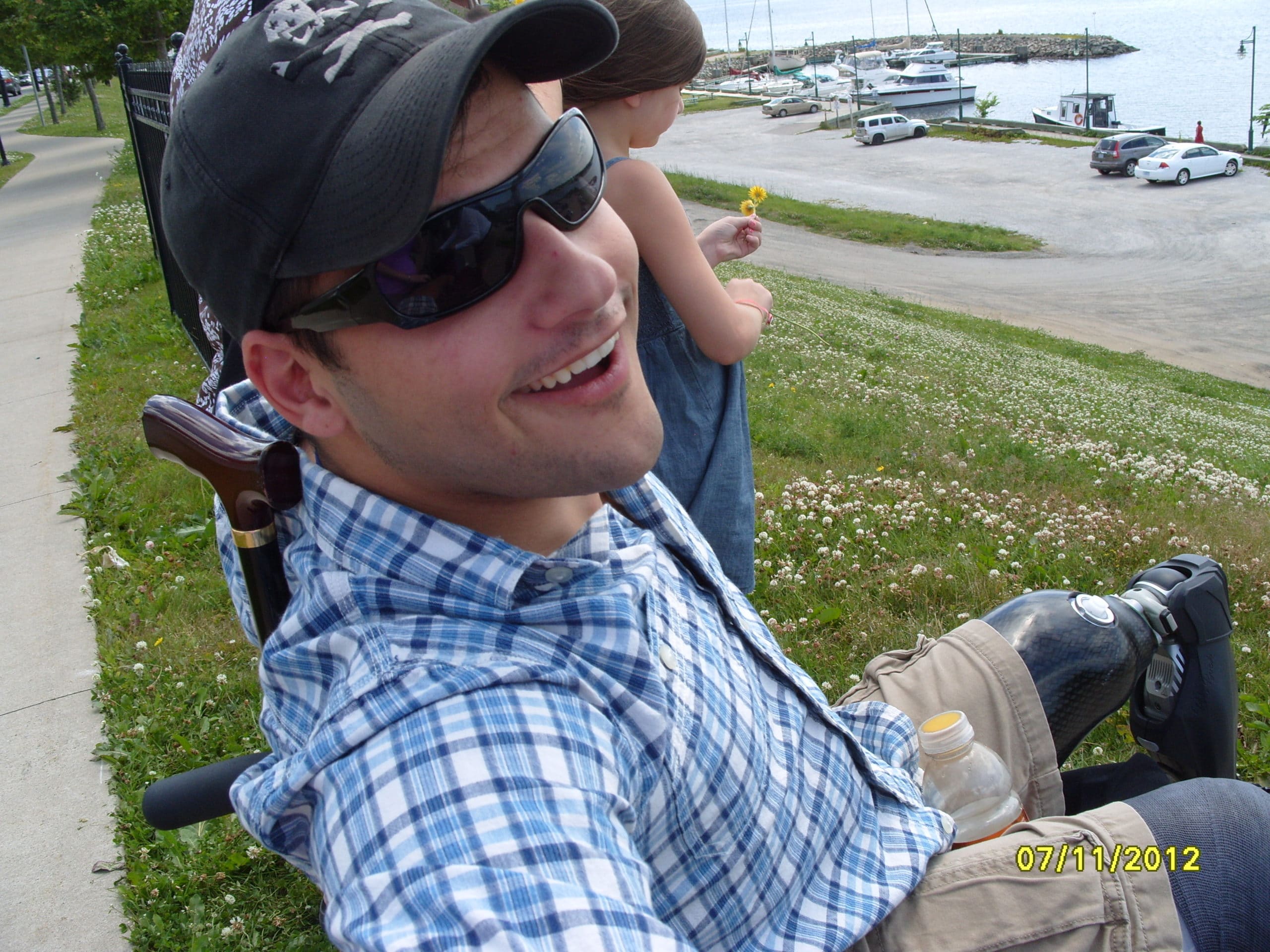 Marine Lance Corporal Christian Brown lost both legs and a finger last December when he was hit by an IED in Afghanistan. Despite his amputations and other serious injuries, Christian turned up ready for his nautical vacation with a troupe of support—his mother, sister, girlfriend, and a family friend.