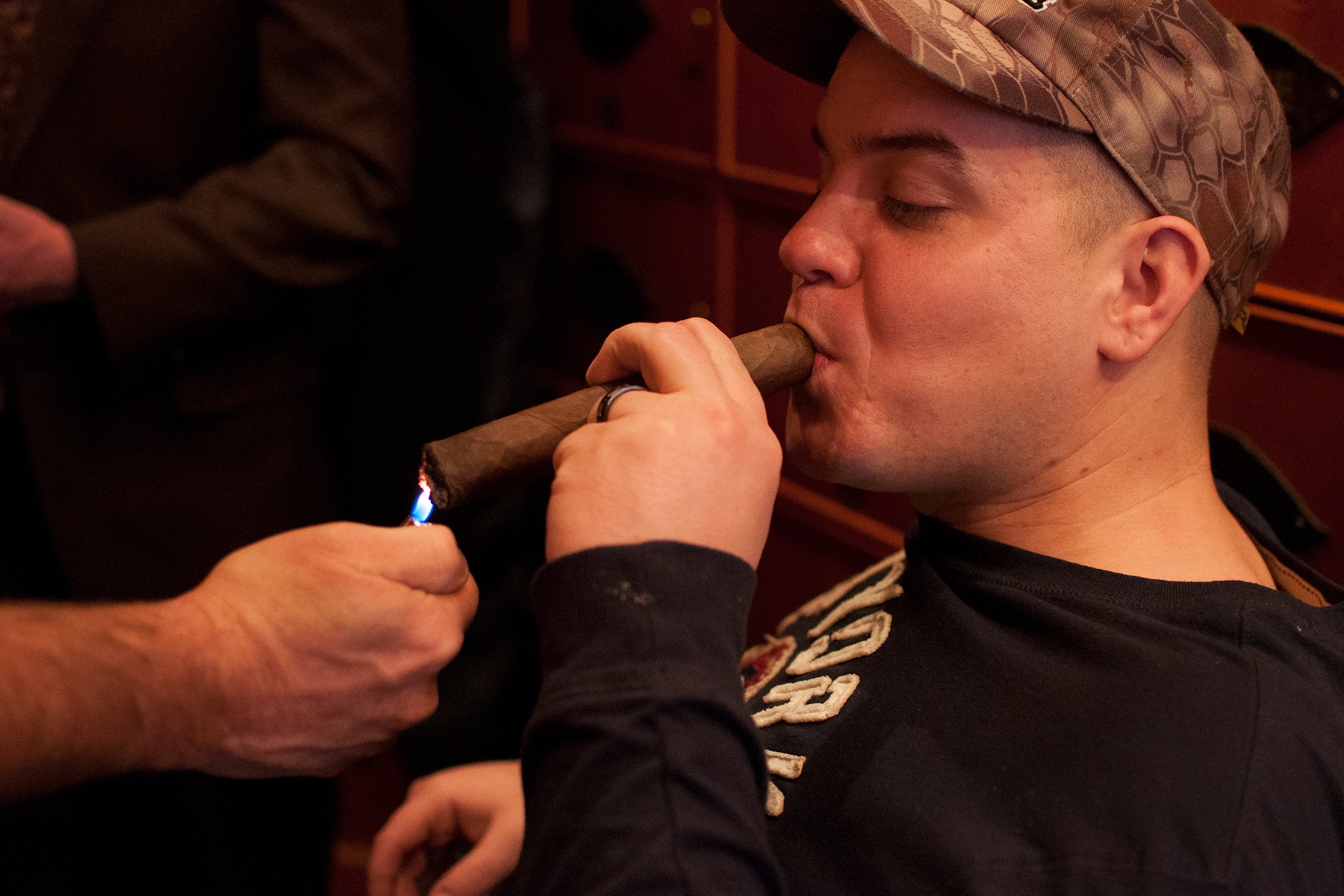 This year, we once again booked Shelly’s Back Room, a friendly yet stylish tavern for cigar enthusiasts, and invited veterans, military staff, and patients from Walter Reed National Military Hospital and their family members—19 in all—for Beverly’s celebrated “cigar night.”